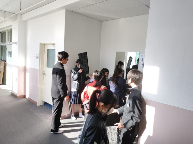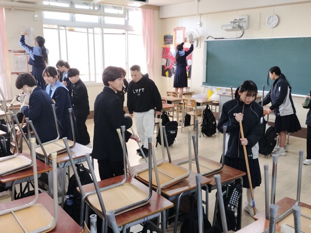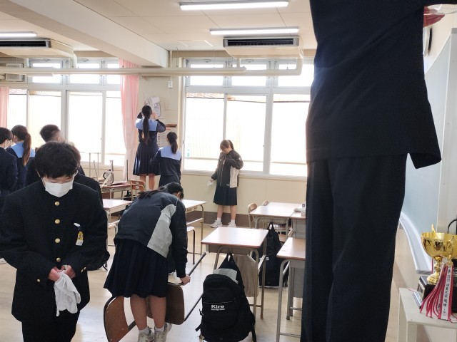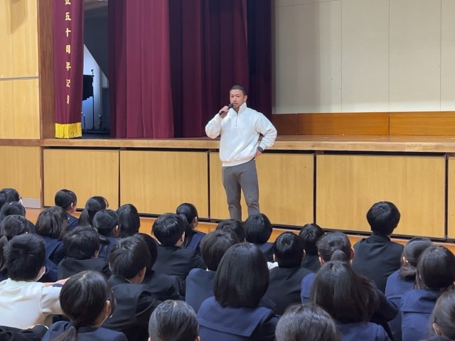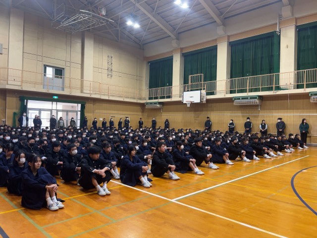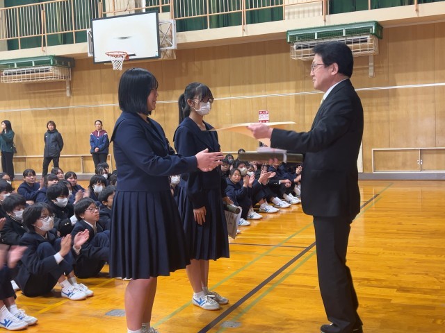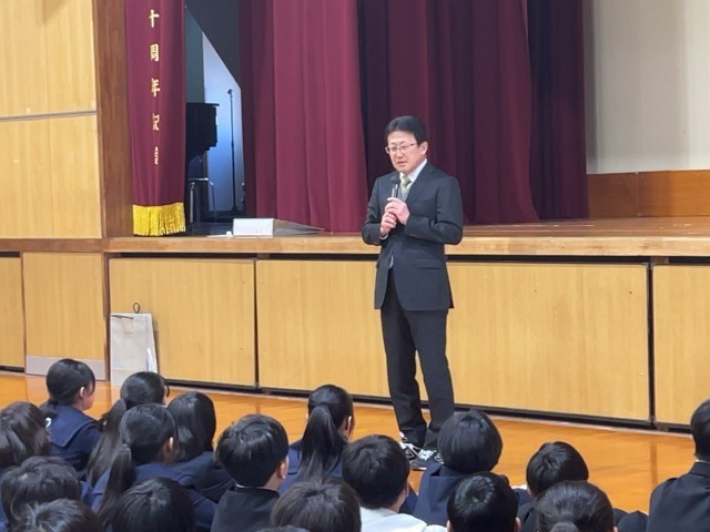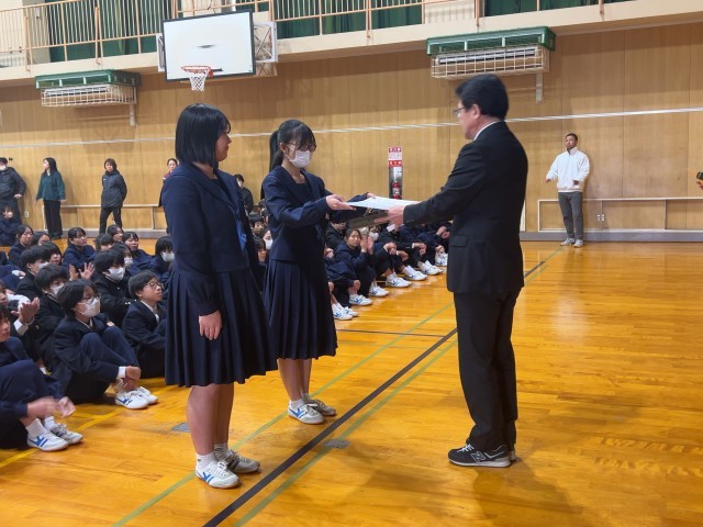 校長先生から3年生に向けて、スポーツ選手の言葉から、「練習の量をたくさんしていない者に、質を語る資格無し」という言葉や、「怪我をしないギリギリのところまで追い込んで練習しなければ上手くならない」という話を例に、受験生に向けて、冬休みは自分を追い込める最後のチャンスです。思いっきり頑張ってくださいとお話しされていました。年末年始は交通事故などに気をつけて、新学期に気持ちを新たに登校しましょう。