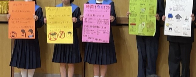 生徒会から校則について考えるプレゼンテーションが行われました。