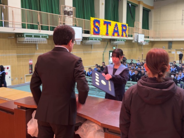 午後から卒業式の準備が、1.2年生の係生徒たちで行われました。3年生の卒業式のために、会場を整えるべく隅々まで清掃などを行いました。