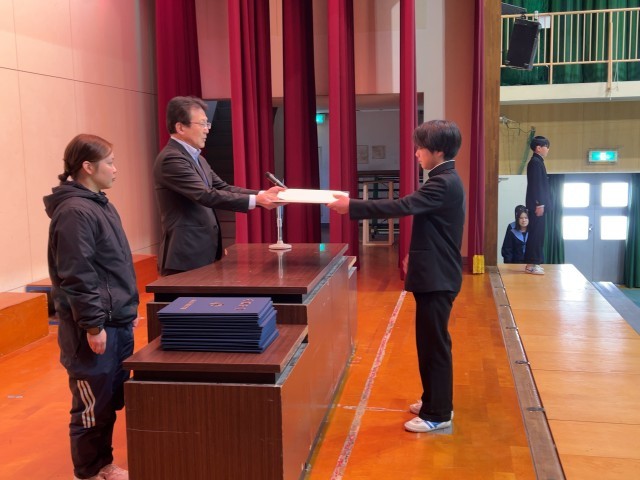 いよいよ明日、第52回卒業証書授与式が行われます。3年間を通じて最後となる取り組みです。みなさん緊張した表情で、真剣に取り組んでいました。