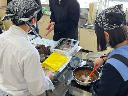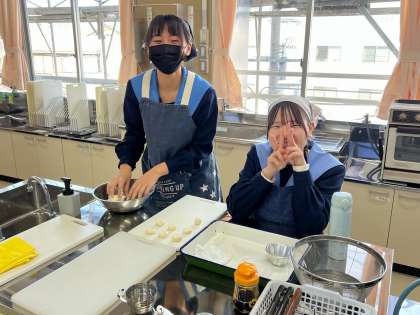 家庭科で調理実習が行われています。