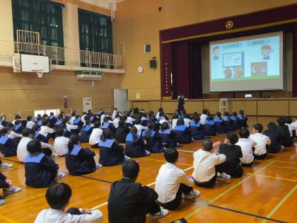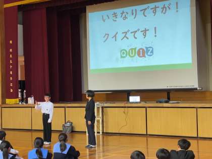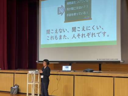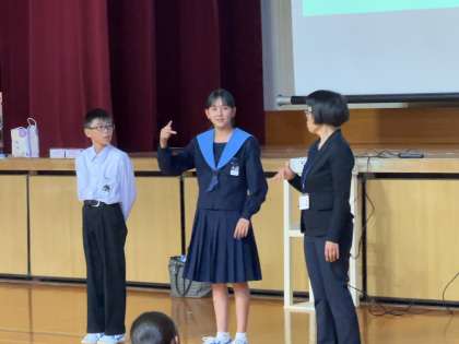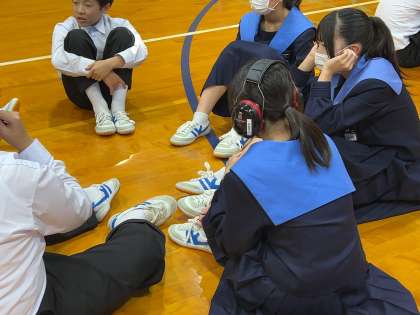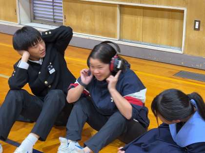 5、6時間目に1年人権学習が行われました。聴覚障がいについて学ぶ授業で、5時間目に体験を中心としたプログラムで、指文字体験やヘッドホン体験を実施しました。また6時間目は、大阪府立堺聴覚支援学校からお二人の先生が来校され、聴覚障がいについての正しい知識や、参加型の体験などを織り交ぜながら、生徒たちにわかりやすくご講話いただきました。ありがとうございました。