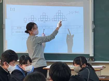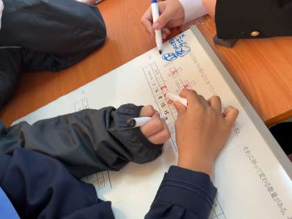 関数の内容をグループで解き進めていく課題で、導き出した答えを班で発表しました。 -