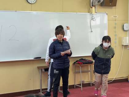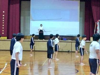 3年生は保健体育の授業で、全日本なぎなた連盟の方にお越しいただき、《なぎなた》について学習しています。