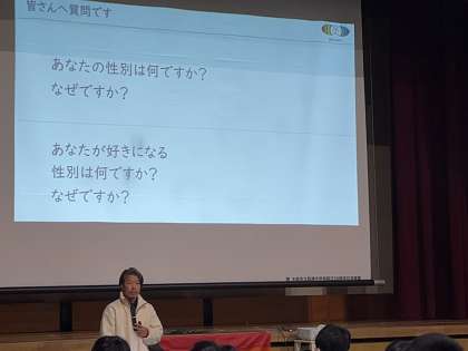 5.6時間目に2年生で性教育が行われて、講師をお招きしてLGBTQについての内容を講演していただきました。性についての多様な価値観を学習するとともに、すべての人が安全に生活ができる社会を目指していく必要性をお話しされました。