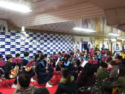 先日、大阪メトロ「平野駅」にて吹奏楽部が演奏を行いました。