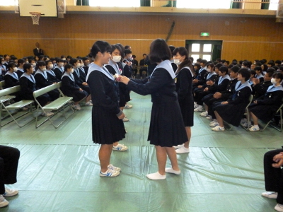 またあわせて、来年度前期生徒会役員の認証式と、大阪府中学生バドミントン大会男子団体の部・準優勝の表彰式も行われました。