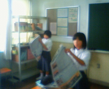 活字離れが進む中、なかなか新聞を積極的に読む生徒は少ないようです。昼休みなどに生徒に<新聞を少しでも読んでくださいね)と声をかけています。