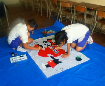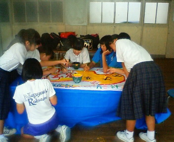 2年生の学級旗の作成です。完成にだいぶ近づいているようです。