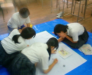 もうすぐ、体育大会です。学級旗の作成もラストスパート。