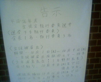 今回の生徒会選挙は1.2年生からの立候補となります。