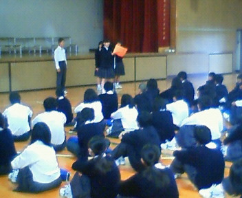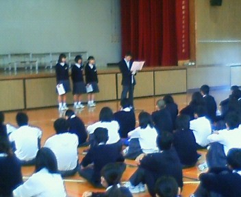 新しい生徒会の役員の挨拶と、前期の生徒会役員の離任の挨拶がありました。