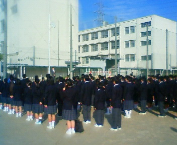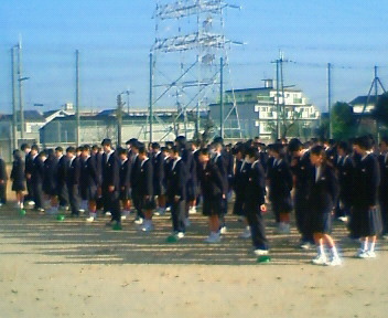 体育館の工事により、年内は全校集会が運動場で行われるます。