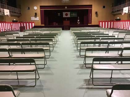 本日、午前中に、先生方総出で式場準備を行いました。