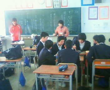 今日、2年1組で昼食時間に、民族講師の方との交流会がありました。韓国料理についてのお話をしていただき、楽しいひと時となりました。