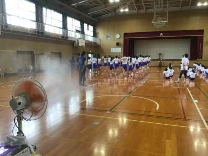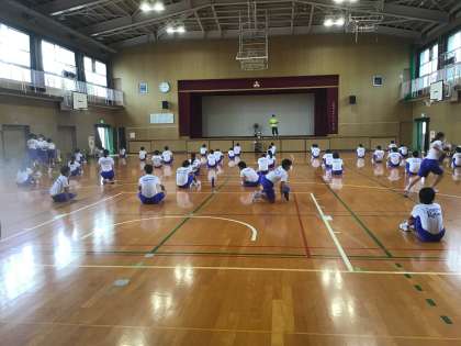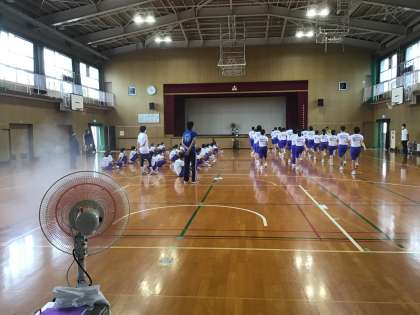 今日(9月2日)は、午後から雨が降りましたが、2年生の体育大会練習会を体育館で行いました。