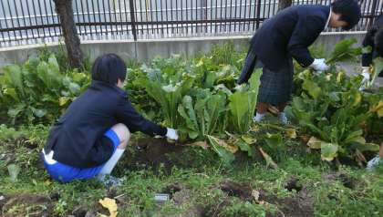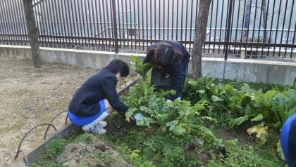 学校元気アップ事業の緑化活動で天王寺蕪とたなべ大根ができました。これは天王寺動物園でもらったサバンナ堆肥で育てました。大根は46本、蕪は数えきれないくらいたくさんできました。