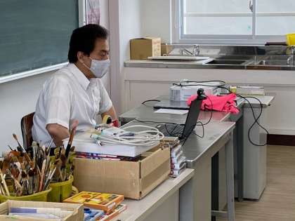 本日、校内でTeamsを使っての全校集会と認証式を行いました。