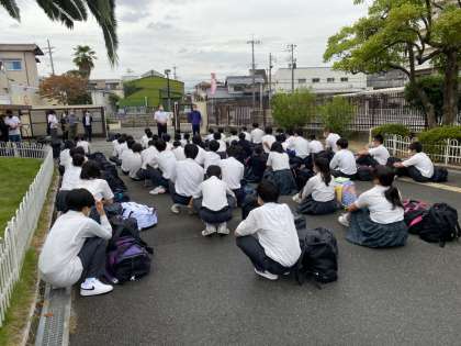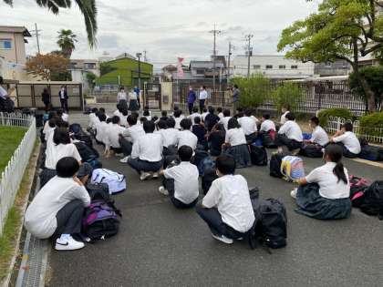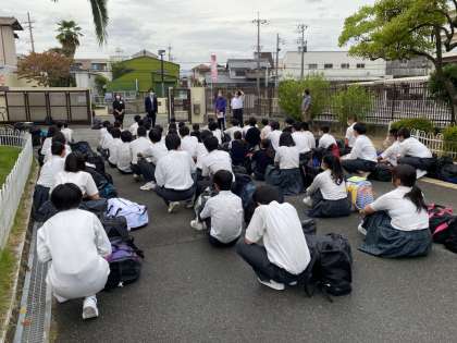 校長先生の話のあと、同行していただく添乗員さん・カメラマンさんの紹介をしました。