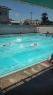 飛び入り競技もあり、泳いでいる人、見ている人、