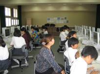 部活動見学は、公式戦で不在のサッカー部を除いた全部活の見学を保護者のみなさまや地域のご代表の方にしていただきました(写真中 バスケットボール部、右 パソコン部)。