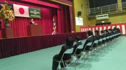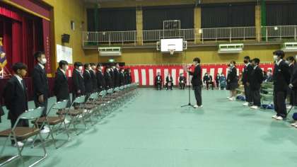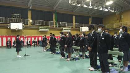 数年ぶりに来賓の方にもたくさん来ていただき、全校生徒が入学式に参加するなか、新入生は少し緊張した様子でしたが、すぐに中学校生活に慣れてくれると思います。