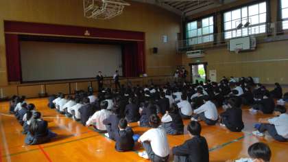 全校集会で、校長先生より「いじめ(といのち)について考える日」の講話がありました。