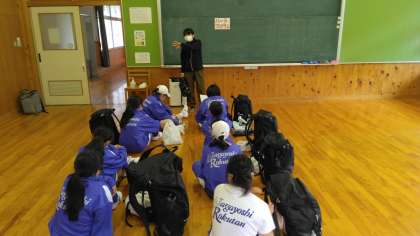 先発隊の女子全員が、吉野宮滝野外学校に到着しました。
