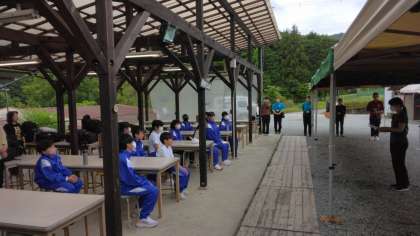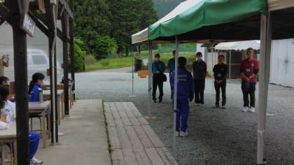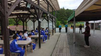 お世話になった宮滝野外学校のスタッフに、代表生徒がお礼の言葉を述べました。