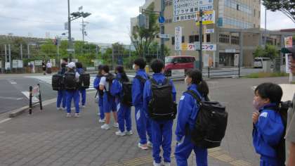 予定より早く、学校に向けて歩きはじめています。みんな疲れているはずですが、軽い足取りです。