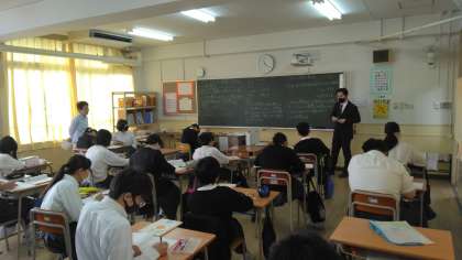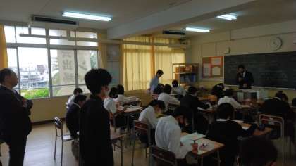たくさんの先生に見守られながら、発言が多く出る活発な授業が展開されていました。