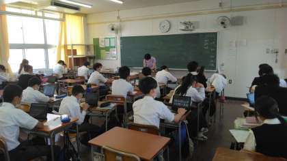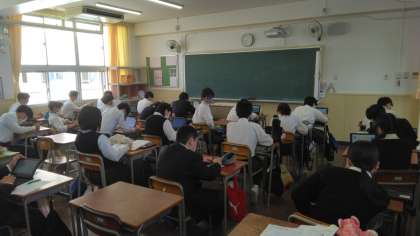 タブレットを使い「心の天気」を入力し、コグトレをしています。