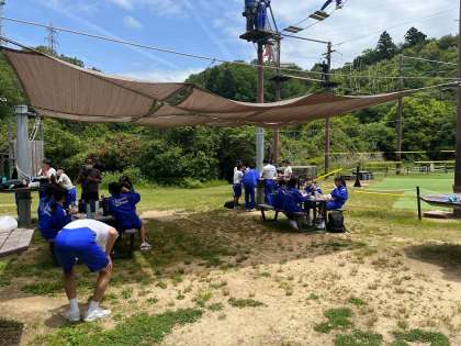 気持ちのいい天気の下、自然に囲まれてお弁当です。