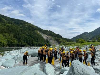 激流をゴムボートで下り、生徒達は大興奮でした。