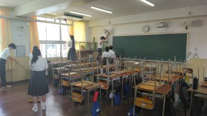 夏休みに向けて、お世話になった教室や廊下はもちろん、ふだんはなかなか掃除ができないところを徹底的にきれいにしています。