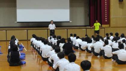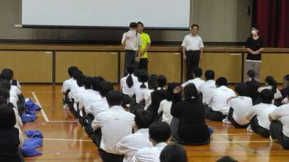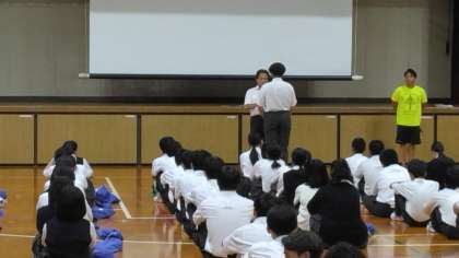 明日、3年生のチャレンジテストがあるので、今週は月曜日に全校集会をしました。