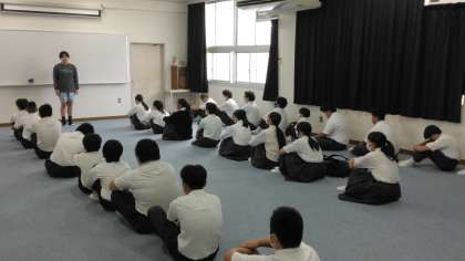 1年生と2年生の学年集会では、それぞれの学年の担当の先生から、体育大会で3年生が披露してくれた「六中ソーラン」の話がありました。