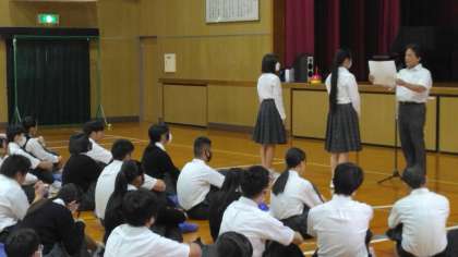 全校集会 俳句コンテストの表彰