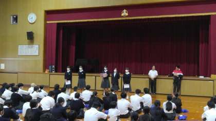 新しく認証された生徒会執行役員からは、長吉六反中学校をより過ごしやすい中学校にしていこうという決意表明がありました。