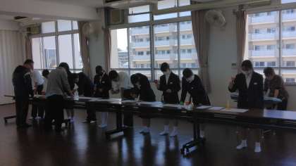 中間テストが終わり、1年は多目的室で、3年は教室と体育館で、文化発表会のための取り組みをしました。