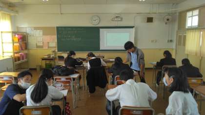 黒板のもう半分はスクリーンを張り、スライドを映します。