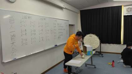 太鼓の音を合図に、本格的な百人一首大会をしています。