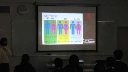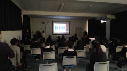 助産師の方をお招きし、視聴覚室で性教育の学習をしています。