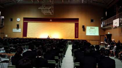 校長先生のあいさつの後、校歌斉唱と続きました。