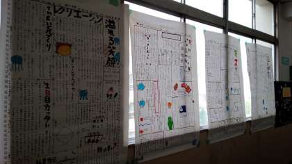 1年生は、班ごとに作成した壁新聞 「一泊移住の思い出」です。