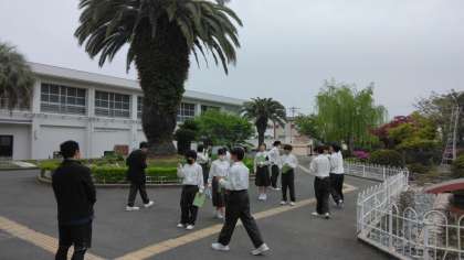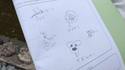 理科の授業で、六反中学校校舎内の自然観察と生き物のスケッチをしています。