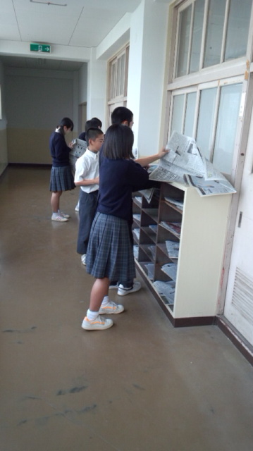 校長経営戦略予算で、毎朝、各学級に4社新聞を配布しています。