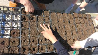 今年も生徒会と元気アップ事業とで協力して、ひまわりの苗を植えました。