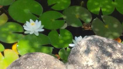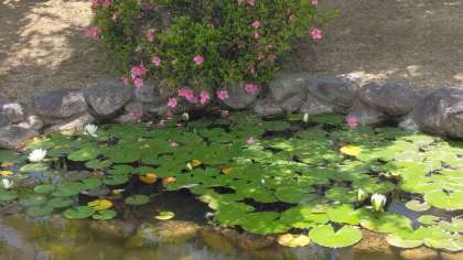 どこから入ってきたのか、たくさんの小魚やアメンボが泳いでいます。