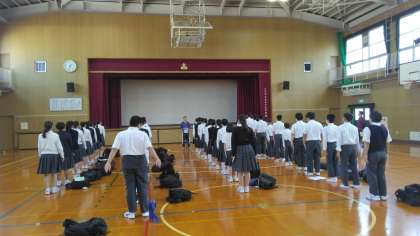 持ち物と、修学旅行に向けての心がまえを確認します。